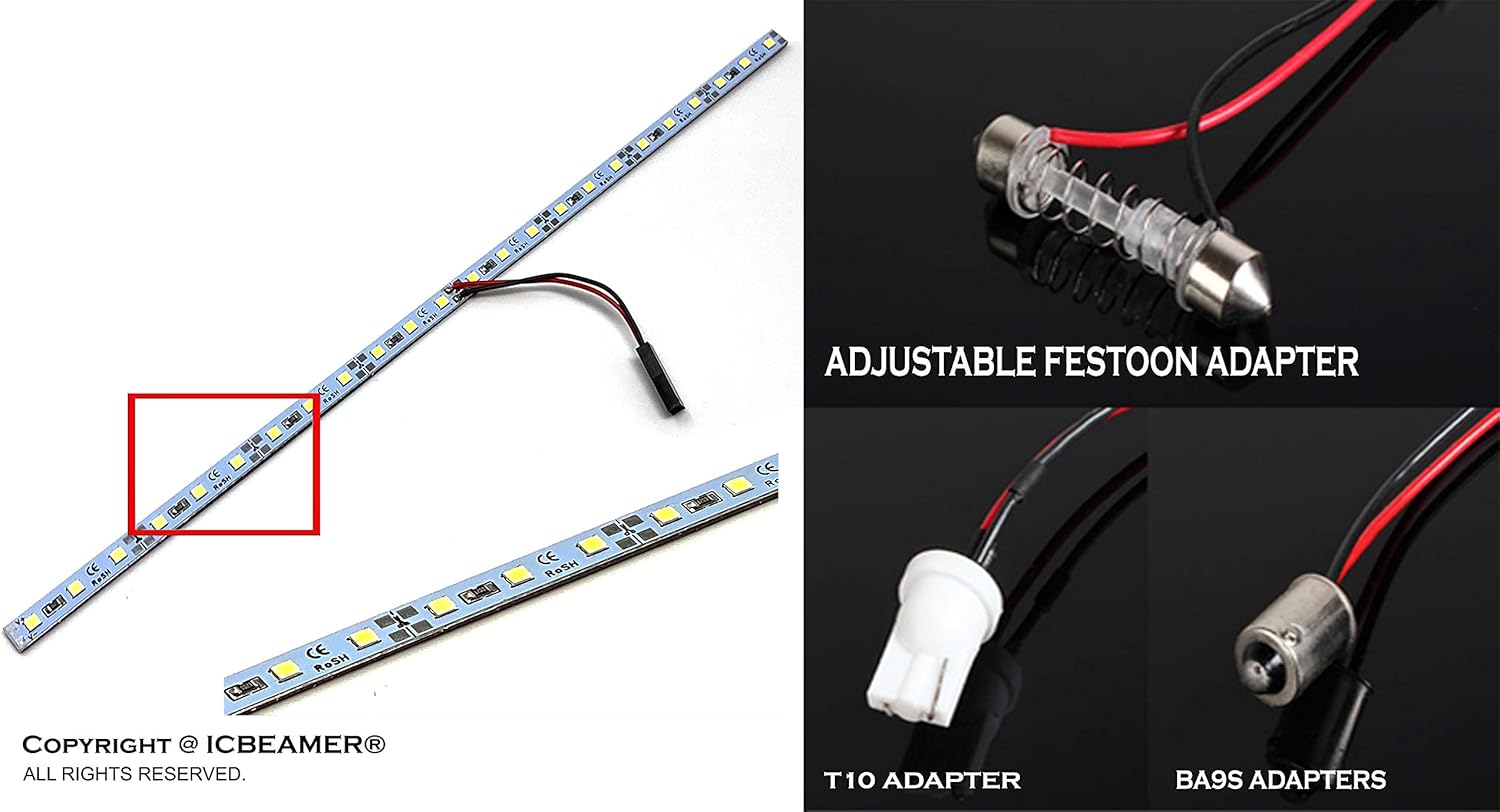 - ā Fit Like a Glove: This LED strip comes with (3) versatile bulb fitment adapters and an extension cord, making it the perfect match for nearly any car, SUV, or cargo area OEM lamp socket. No matter your vehicle, we've got you covered!