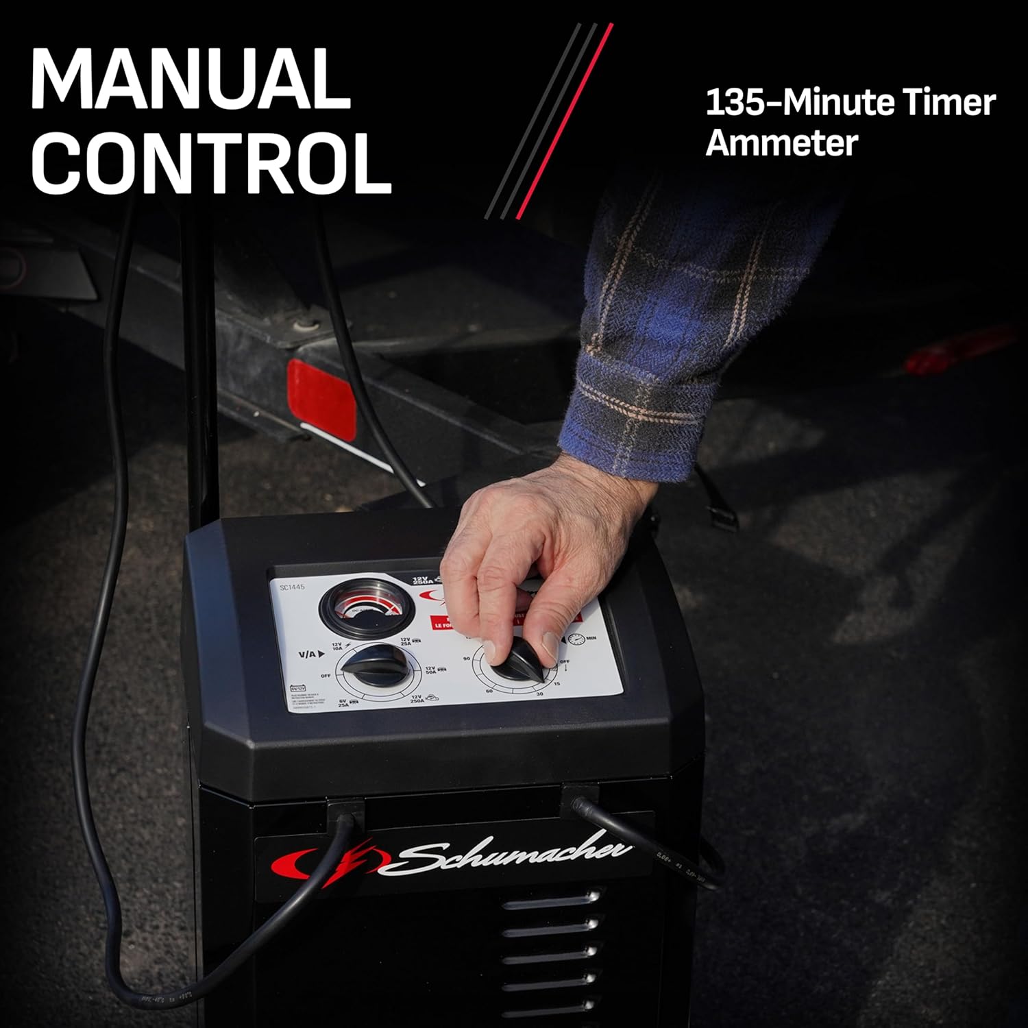 Schumacher Electric Manual Battery Charger & Engine Starter – 6V/12V 200A Heavy-Duty Auto Battery Charger with 40A Boost Mode, Color-Coded Clamps, 6-Foot Output Cables & Rugged Design SC1446
