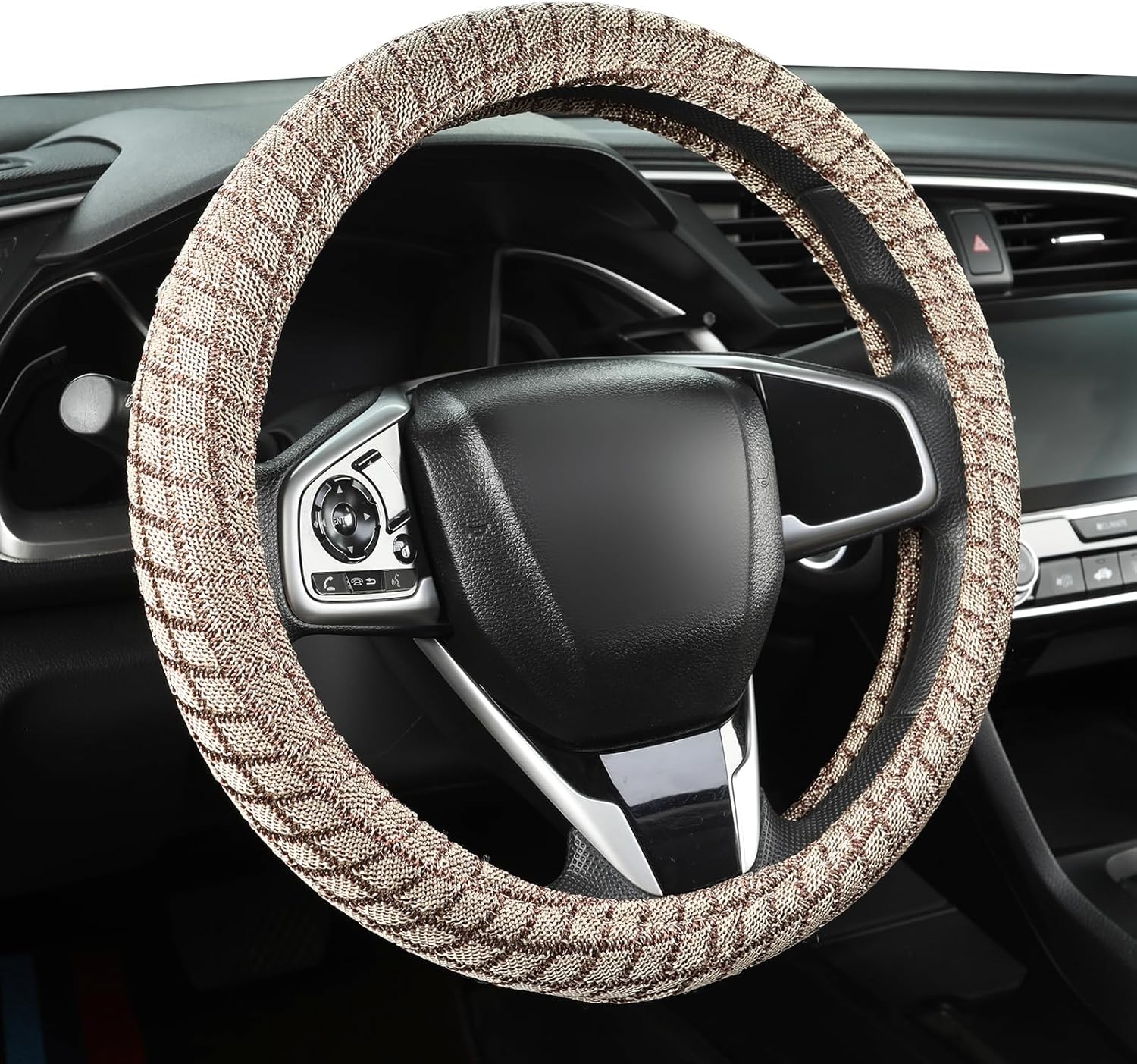 Auto Newer Breathable Steering Wheel Cover Suitable For Four Seasons,Anti-Slip Design,Odorless,Easy Carry Unviersal Fit for Truck SUV Sedans Vans,Interior Accessories Standard Size[14" 1/2-15"](Beige)